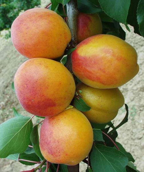 středně velké, srdčité, slupka matná, hladká, základní barva oranžová, se světle červeným tečkovaným líčkem, dužnina tmavě oranžová, pevná, v konzumní zralosti rozplývavá, oddělitelná od pecky, chuť jemně navinulá, dobrá