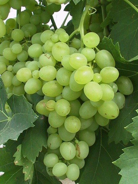 - velmi velký, kuželovitý, středně hustý hrozen; bobule je velmi velká, vejčitá, žlutozelené barvy