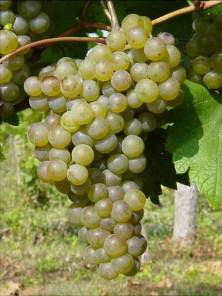 - středně velký až velký, kuželovitě-válcovitý, středně hustý hrozen; bobule je středně velká, kulatá, zelenožlutá s hnědavým líčkem