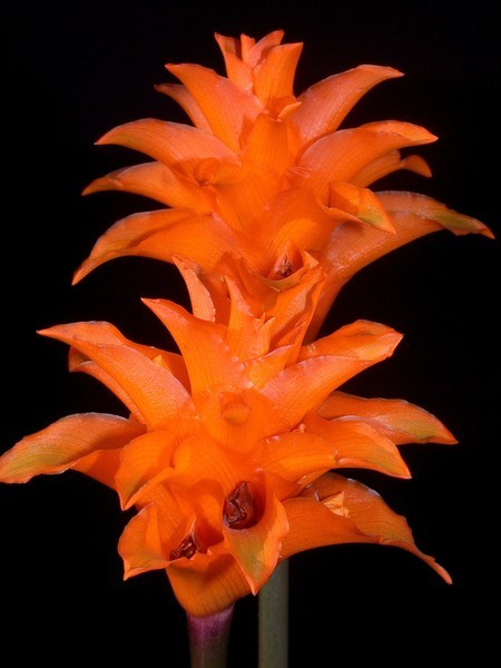- okrouhle vejčité klasy se svítivě oranžovými, spirálně sestavenými hrotnatými listeny a oranžovými květy