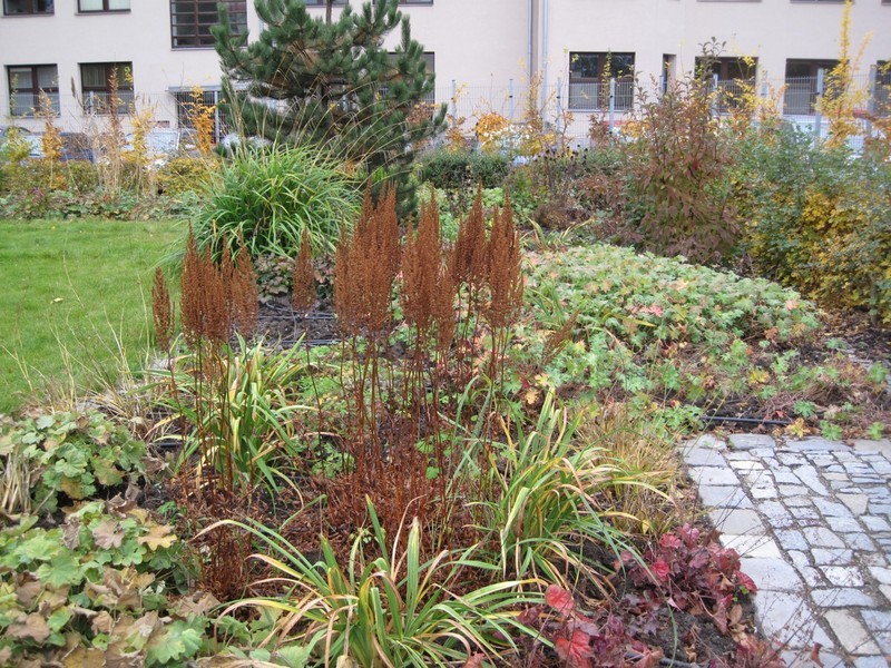 - v době květu. Okrasná také listem a suchým plodenstvím v zimě. V době rašení odrůdy mohou vybarvovat do vínových, hnědavých tónu barev, ve vegetaci sytě zelený atraktivní list. Květenství je zajímavé i po odkvětu - struktury na záhonu.