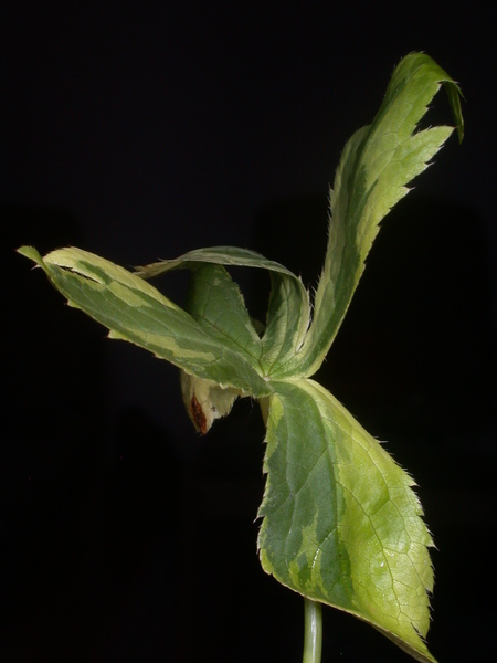 - přízemní dlouze řapíkaté, hluboce 3-5 (7) dílné a přes 0.1 m široké, lodyžní zpravidla třídílné, s úkrojky ostře a štětinkatě zubatými až téměř laločnatými