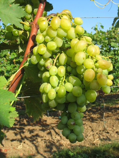 velmi velký hrozen, kuželovitý, středně hustý až hustý; bobule je velmi velká, podlouhle oválná, zelenožlutá