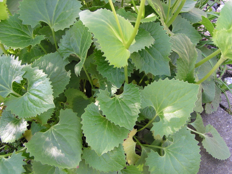- Prízemní listy dlouze řapíkaté, se srdčitou čepelí cca 3–10 x 3–9 cm, na okraji pravidelně ostře vrúbkovaně zubatou, lodyžní spodní přisedlé, horní objímavé, podlouhlé