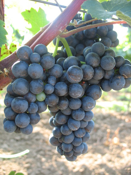 - středně velký hrozen, křídlatý, spíše hustší; má středně velké kulaté bobule, tmavě modré barvy