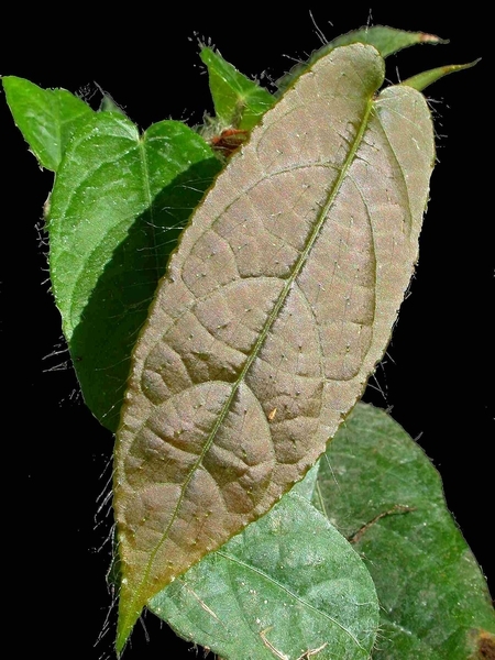 hrotnatě elipčité, pergamenovité nebo kožovité, zhruba 0.1 m dlouhé (v dopělosti větší), symetrické, lysé nebo řídce pýřité, s cystolity, často s podvinutými okraji; nervatura zespodu vyniklá