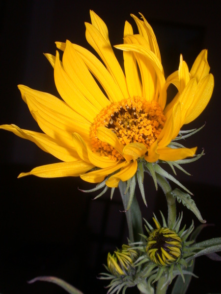 - úbory s 10-20 žlutými paprsky, s padesáti nebo více kvítky v malém disku a zákrovem z 40-50 nitkovitých, nežláznatých, odstálých listenů