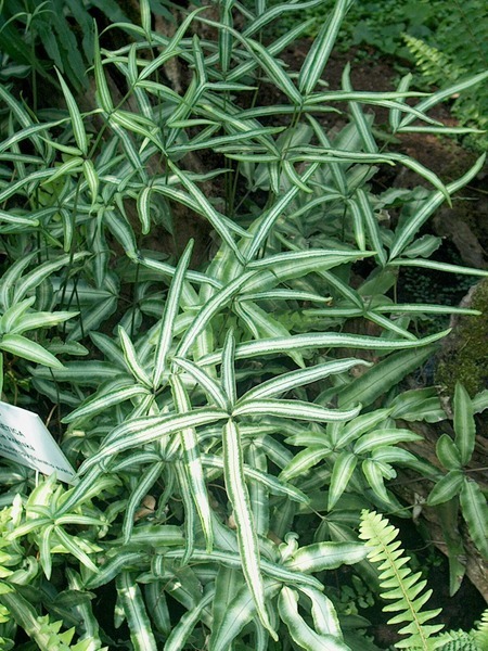 - ´Albolineata´- krémově bílý list; ´Rivertoniana´- lis 2x zpeřený, okraje lístků velmi ostré, hustý vzrůst; ´Mayi´- albolineátní forma, apex lístků rozšířený, zvlněný, okraj lístků hladký; ´Roweri´- podobný Mayi, okraj lístků ostrý; ´Wimsetii´- 2-3 x zpeřený list