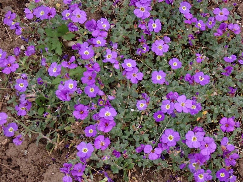 - kolektivní zahradní hybridy několika vysokohorských druhů (Aubrieta deltoidea DC., Aubrieta columnae Guss., Aubrieta erubescens Griseb., Aubrieta olympica Boiss. a dalších), vesměs z kamenitých stanovišť
