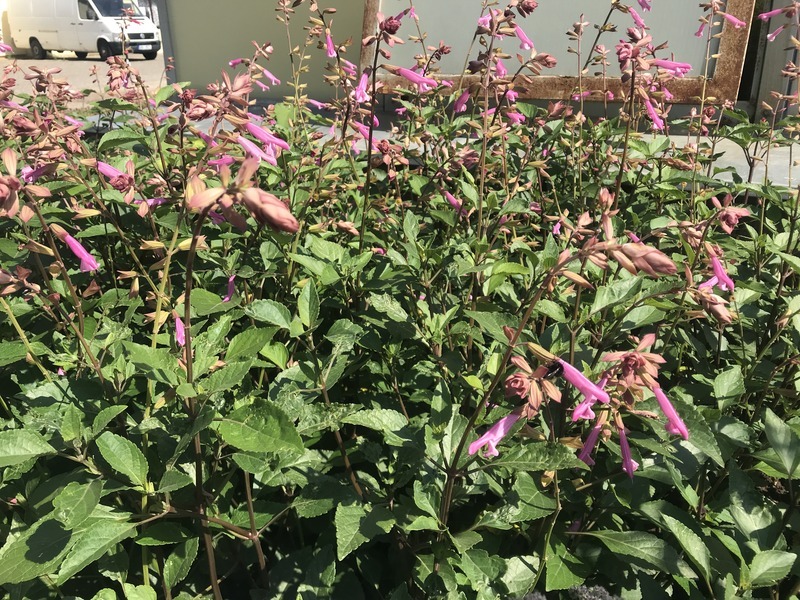 Detaily květenstev z leva doprava: Salvia ´Ember´s Wish´, Salvia ´Kisses and Wishis´, Salvia curviflora,Salvia ´Amistat´