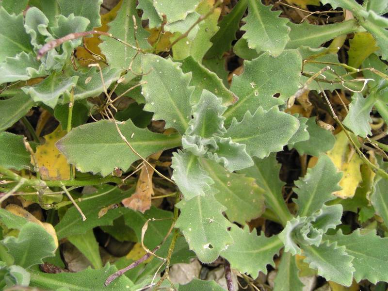 - šedozelené - jemně chloupkaté, nepravidelně hrubě zubaté, na sterilních lodyhách sestavené v růžici; u báze sbíhavé; lodyžní listy střídavé, zmenšené, přisedlé až objímavé