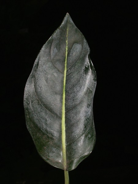 - svérázný taxon sekce Chamaecaulon, zaměnitelný snad jen s A. brevispathum Engler s přetrvávajícími katafyly při řapících delších listových čepelí. Nově ale situaci komplikují thajské hybridy obou druhů s A. rotundum N.E.Br., často s duhově probarvenými listy