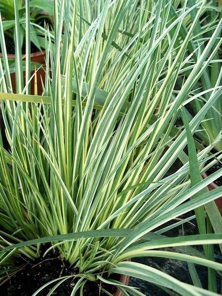 trávovitá bahenní rostlina výšky 15 – 20 cm, zelené kultivary až 40 cm