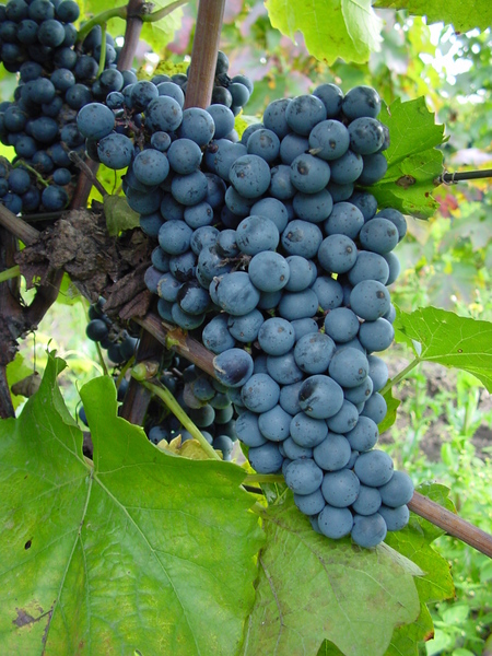 - středně velký, kuželovitý hrozen, často s křidélkem, poměrně hustý; bobule je malá až střední, kulatá, modročerná