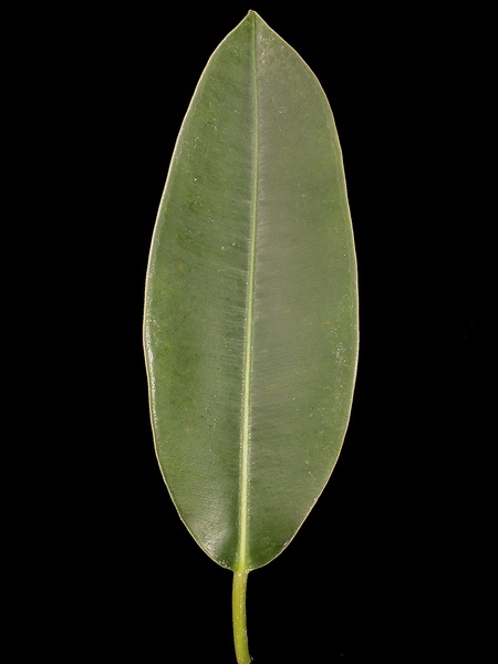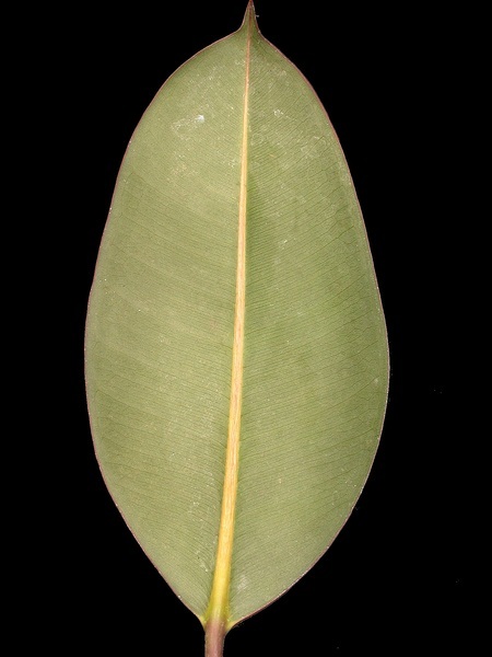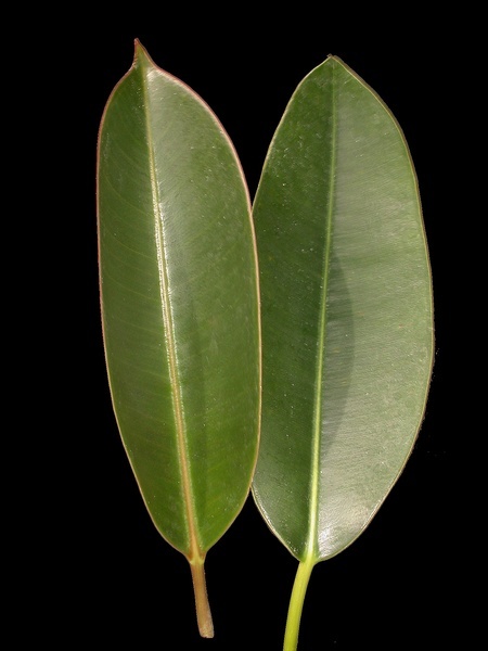 - elipčité, protáhle hrotnatě špičaté, až 0.3 m dlouhé se silnými řapíky; lysé a voskově lesklé, kožovité, se sotva patrnou nervaturou vybíhající paralelně ze silného středního žebra, voskodárné žlázky redukované, palisty veliké, srostlé, blanité, bělavé nebo červené, záhy opadavé