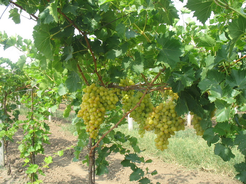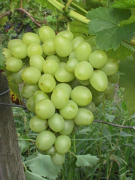 - velmi velký, kuželovitý, středně hustý hrozen; bobule je velmi velká, vejčitá, žlutozelené barvy