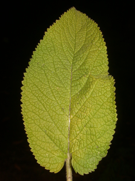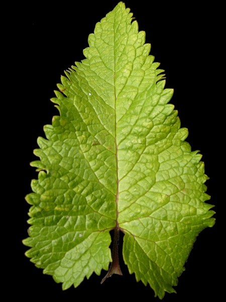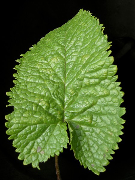 - bazální řapíkaté a trojúhle srdčité, lodyžní více kopinaté, hrubě zubatě vroubkované, svrchu drsně chlupaté (nevětvenými trichomy), vespod s chlupy hvězdicovitými nebo olysalé