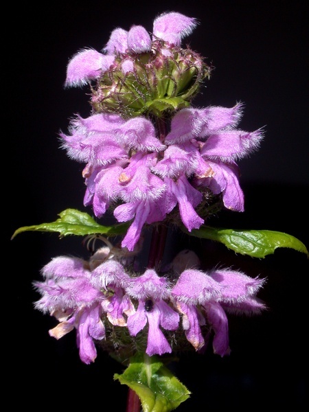 - zygomorfní, různoobalné, pětičetné, srostloplátečné, dvoupyské se svrchním pyskem zevnitř hustě vousatým, purpurové, plstnatě oděné, s dvoumužnými tyčinkami s přívěsky