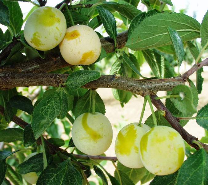 - mirabelky, malé (7-12 g), kulovité, zlatožluté s karmínovým tečkováním, slupka bělavě ojíněná, tenká, pevná, dužnina středně pevná, žlutá, polotuhá, sladká, příjemně aromatická, dobrá odlučitelnost, příjemně aromatická a sladká