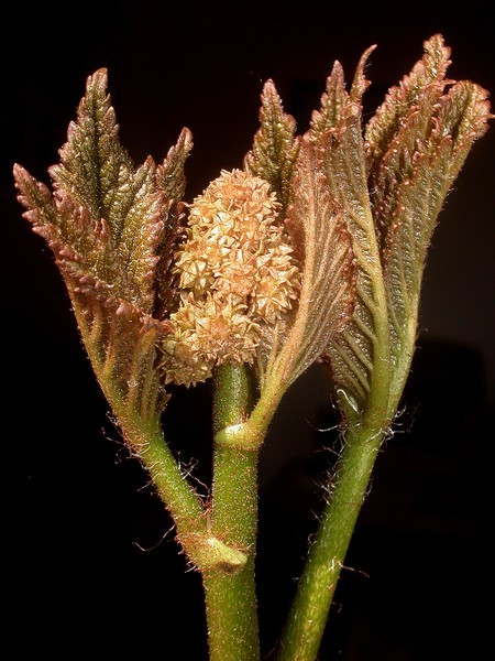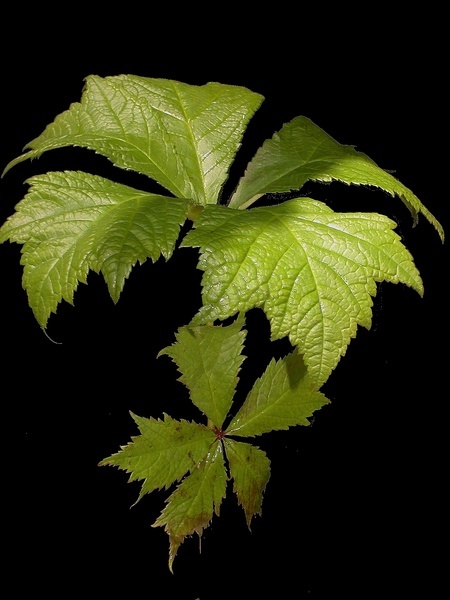 - robustní, dlanitodílné, na pochvatých pýřitých řapících 0.4 - 0.8 m dlouhých, s 5-7 obvejčtými, přes 0.2 m dlouhými, lysými, svrchu hrotnatě laločnatými, pilovitými lístečky