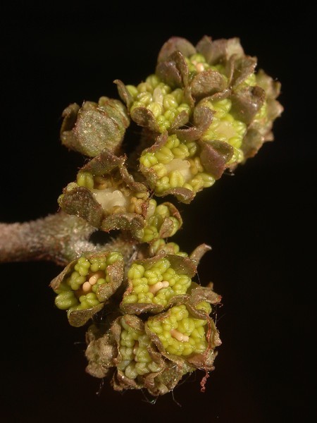 - drobné, oboupohlavné, haplochlamydeické, pětičetné až sedmičetné s úzce vejčitými, mléčně bílými sepaly, diplostemonické s polospodními semeníky
