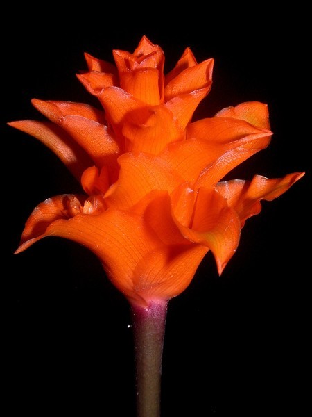 - okrouhle vejčité klasy se svítivě oranžovými, spirálně sestavenými hrotnatými listeny a oranžovými květy