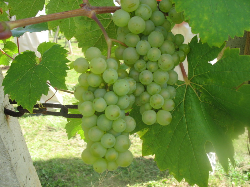 - malý, válcovitě-kuželovitý hrozen, často s křidélkem, středně hustý; bobule je malá až střední, kulatá, žlutozelené barvy, s černou tečkou po blizně