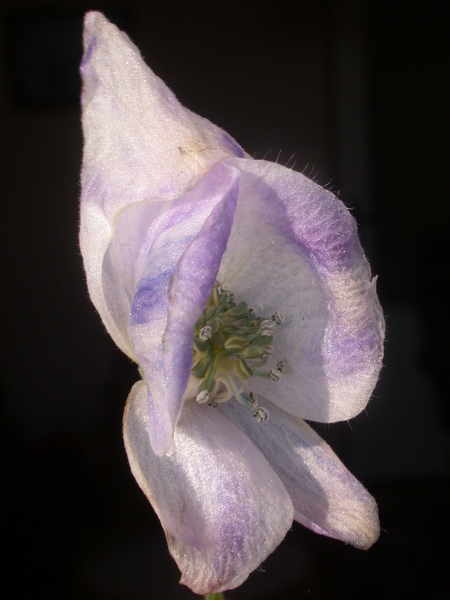 - oboupohlavné, souměrné, pětičetné, volnoplátečné, modré nebo modrobílé s přilbicovitými horními tepaly, se dvěma nektariemi, s množstvím pýřitých tyčinek 3-5 lysými, sterilními pestíky