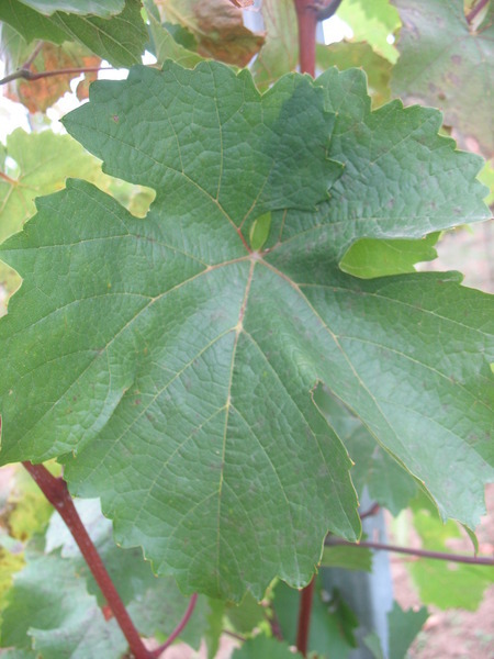 - středně velké, pětilaločnaté bez znatelných výkrojů, bazální výkroj je otevřený s průsvitem; povrch listu je tmavě zelený, slabě puchýřnatý