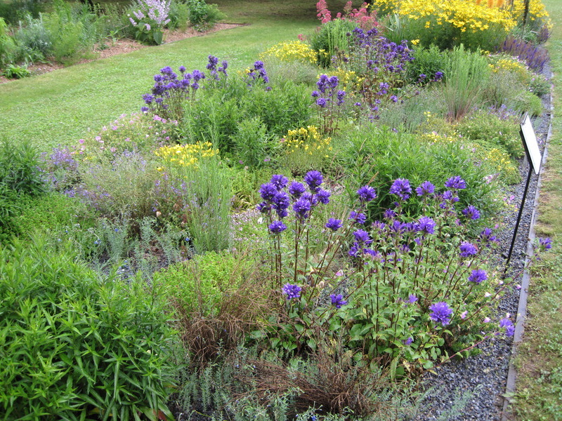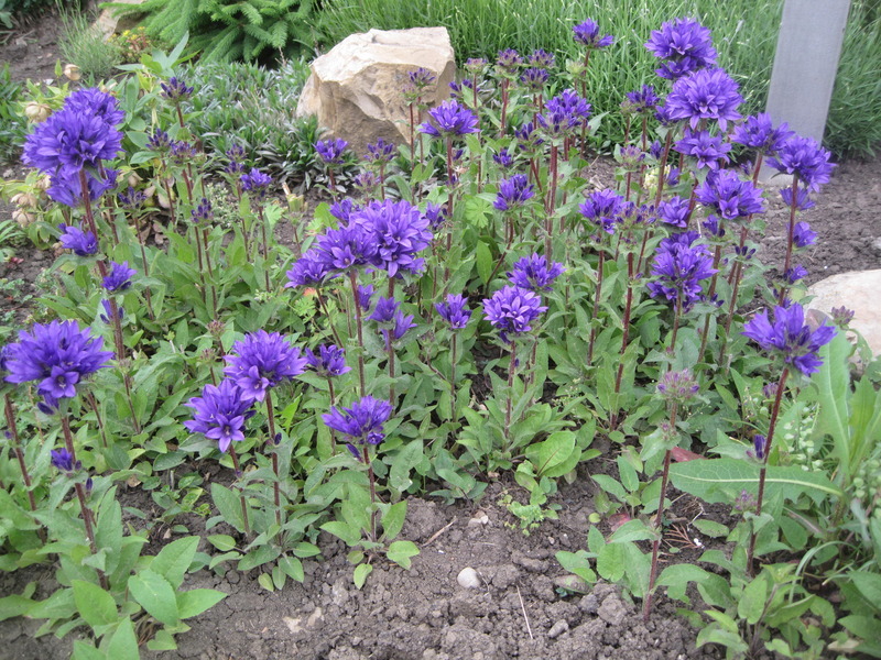 Campanula glomerata v trvalkové směsi s vysokým stupněm autoregulace. Průhonice 2009. Foto Kuťková