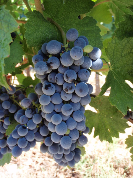 - menší válcovitý hrozen, středně hustý; má menší kulaté bobule, modrofialové barvy
