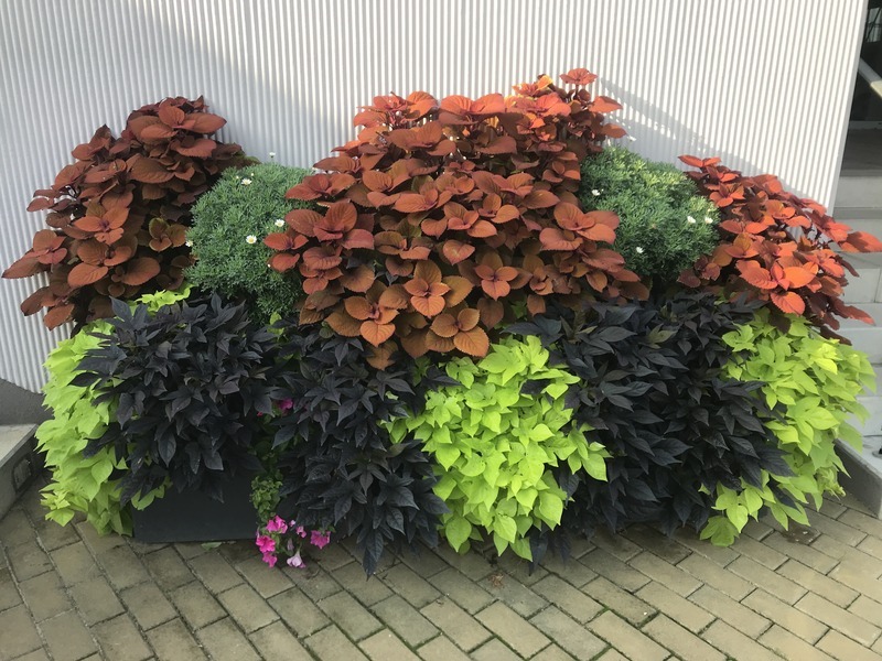 Použití převislých forem Ipomoea batatas v nádobách. Lednice, 2022. Foto: T. Kuťková.