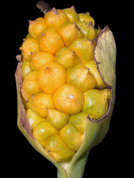 - úžlabní palice s různopohlavnými kvítky, vespod pistillátními, výše samčími, s dlouze stopkatými, přes 0.1 m dlouhými bílými toulci