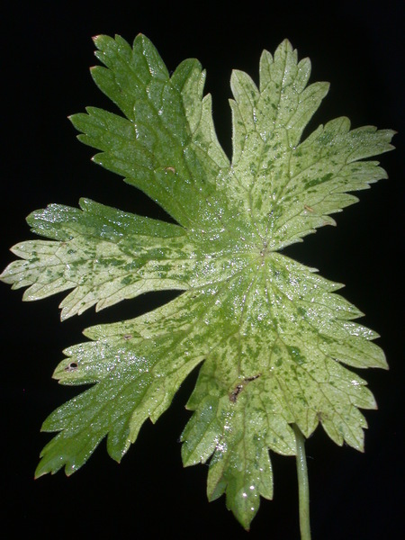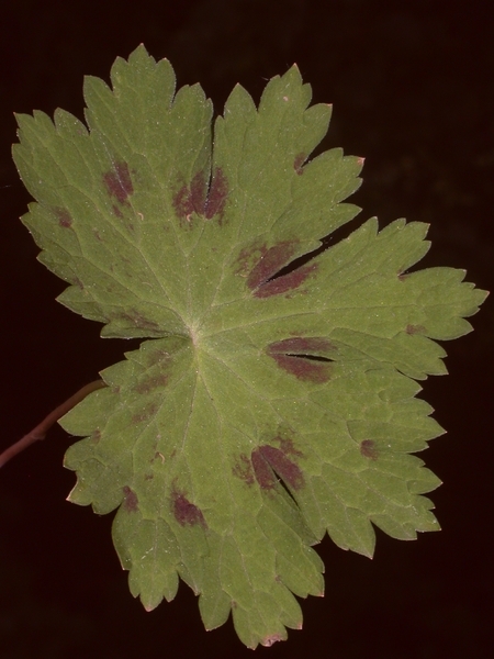 - dlouze řapíkaté (horní téměř přisedlé), v obrysu obvejčité, přes 0.1 m široké, dlanitě pětidílné s úkrojky nepravidelně zubatými, oboustranně žláznatě pýřité, často s kaštanovou kresbou (ne u subsp. lividum!), s brzy zasýchajícími palisty