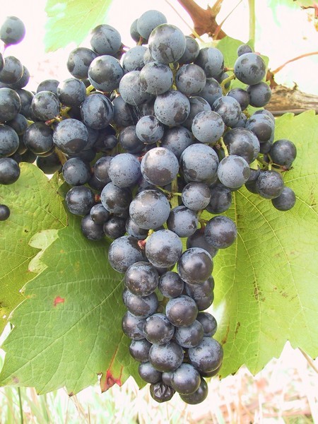 - středně velký, kuželovitý hrozen, často s křidélkem, poměrně hustý; bobule je středně velká, kulatá, tmavě modré barvy