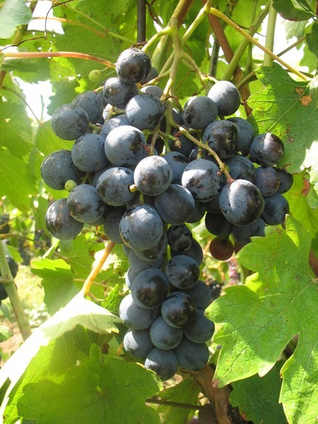 velký hrozen, kuželovitý, středně hustý až hustý; bobule je velká, mírně oválná, fialovomodrá s voskovým ojíněním