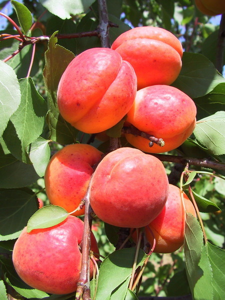 - středně velké, oválné, pomerančové barvy s s atraktivním červeným líčkem (10-50 % povrchu slupky), atraktivní, pevné, dužnina tmavě oranžová, pevná, s příjemnou texturou, velmi chutné, dobrá odlučitelnost