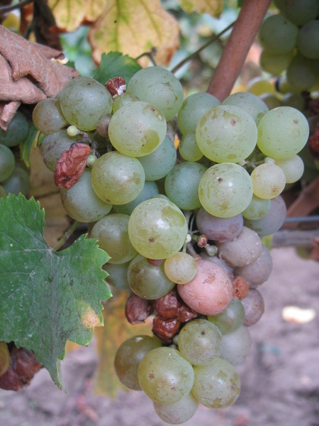 - malý, válcovitě-kuželovitý hrozen, často s křidélkem, středně hustý; bobule je malá až střední, kulatá, žlutozelené barvy, s černou tečkou po blizně