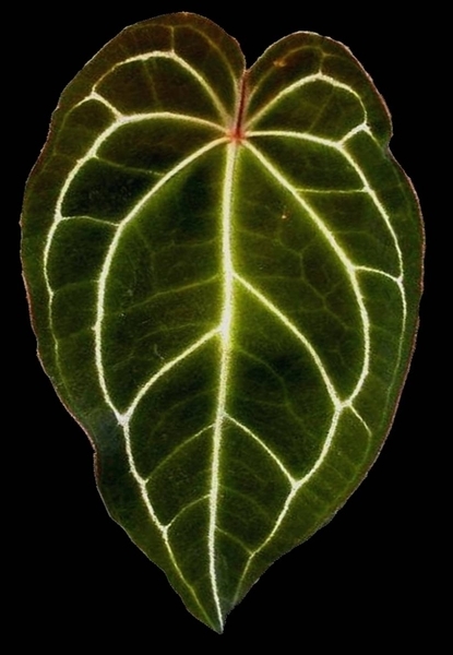- epifyt s velikými, dlouze řapíkatými, vejčitě srdčitými listy s kontrastně zbarvenou nervaturou