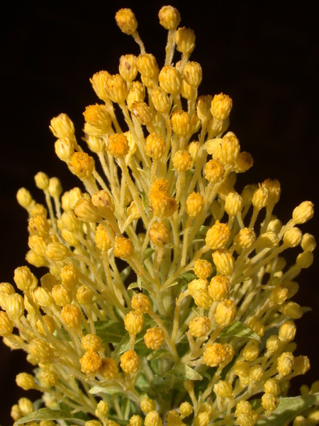 - drobné úbory s 5-15 žlutými paprsky a méně než deseti kvítky disku, seskládané v bohatých pyramidálních latách