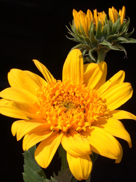 - úbory až 0.1 m veliké, s 25-35 (u plných odrůd i značně více) žlutými paprsky kol disku 30-40 mm širokého, chráněné zákrovem kopinatých, zelených, odstálých listenů