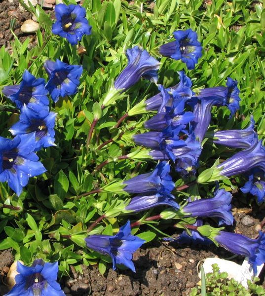 - Gentiana ×acaulis Hort. - pod uvedeným názvem v zahradnické praxi nejčastěji pěstovaný hybrid s přítomností rodičovských druhů G. acaulis L., G. clusiis Perr. & Songeon. Nejčastěji pěstovaná odrůdy ´Frohnleiten´