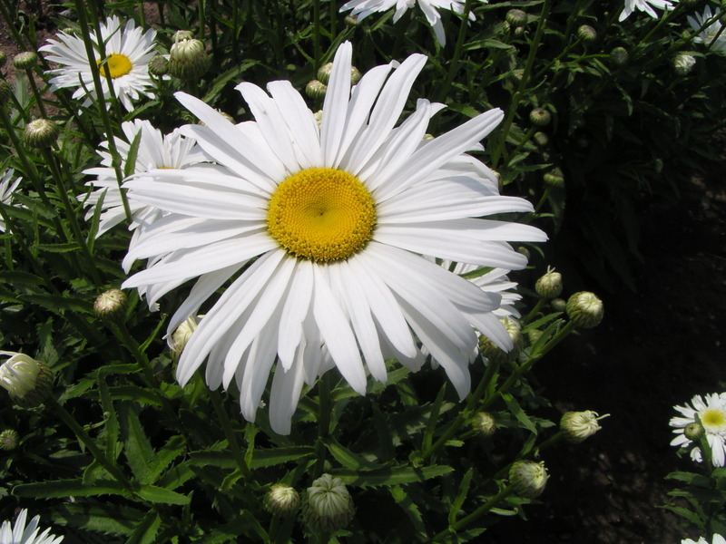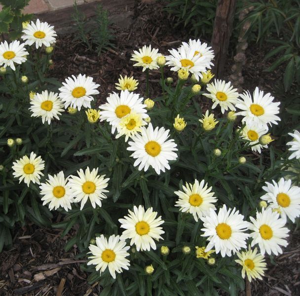 - Odrůdová skladba je značně bohatá. Odrůdy se liší: 1) velikostí: nízké až středně vysoké (30-60 cm - např.´Silver Princess´ (30-50 cm), ´Broadway Lights'®´ (40-60 cm), ´Snowcap´ (35 cm), ´Sněhurka´ (40-50 cm)), vysoké (od 60-120 cm - např. ´Christine Hagemann (60-80 cm), ´Polaris´ (100-120 cm), ´Wirral Supreme´( 70-90 cm), Sonnenschein' (70-100cm); 2) stavbou květu: Jednoduchý ) např. Becky´, Exhibition´, Gruppenstolz´, poloplný (např. ´Snowdrift´, ´Christine Hagemann´, ´Stina´), plný (např. ´Sněhurka´, ´Wiral Supreme´, ´Aglaia´) . Vedle bílých jazykovitých květů se objevují i odrůdy se žlutými květy (např. ´Broadway Lights', Sonnenschein' )