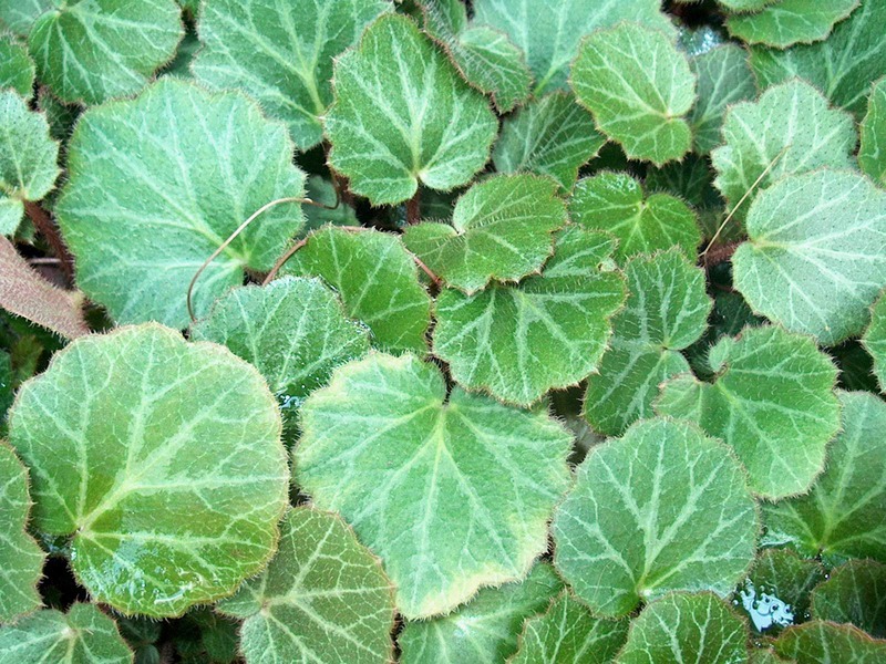 - v přízemní růžici; dlouze řapíkaté, odstále chlupaté; čepele okrouhlého až ledvinovitého tvaru, v průměru 4-5 cm, na bázi srdčité a na líci pokryty jemnými chlupy; masité, tmavě zelené se stříbrnou kresbou kolem žilnatiny; hrubě vykrajovaný okraj listové čepele