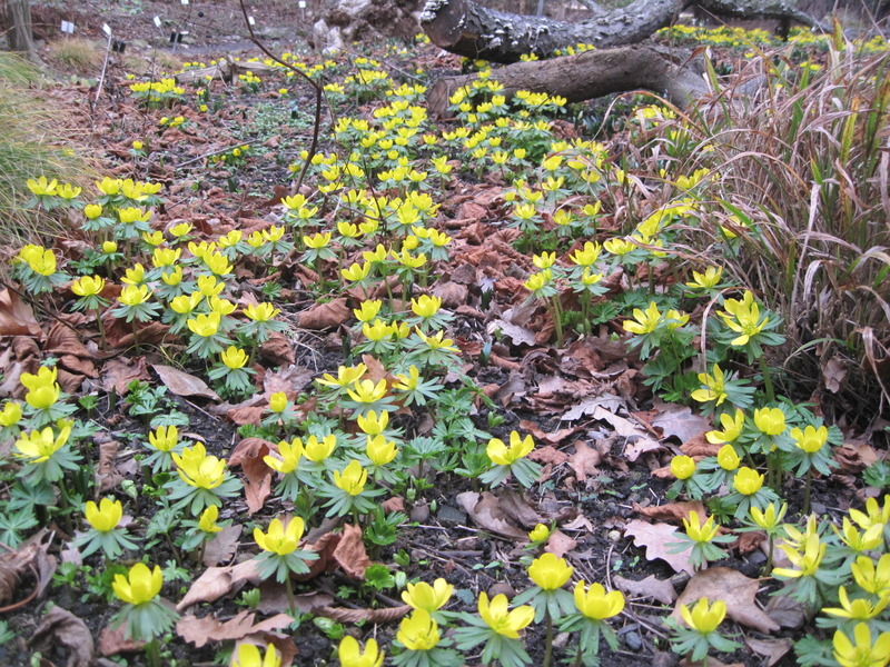 Eranthis hyemalis (vpravo) a Eranthis cilicica (vlevo). Foto Kuťková