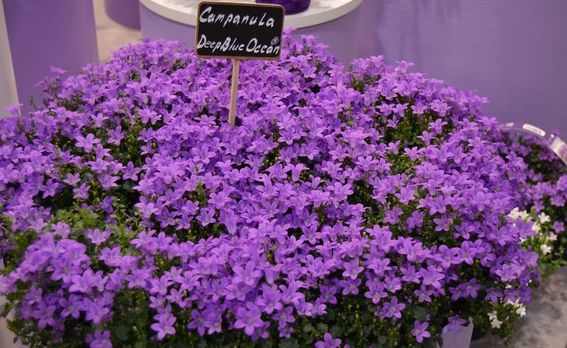 Prezentace výpěstků Campanula dánské firmy Thoruplund na veletrhu. Essen 2019.