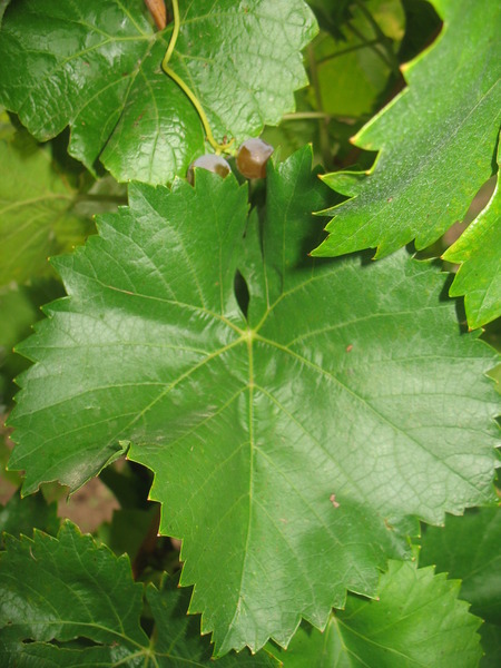 - středně velké, slabě pětilaločnaté s mírnými výkroji, bazální výkroj je lyrovitý, lehce překrytý; povrch listu je světle zelený, hladký