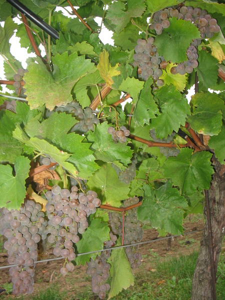 - středně velký, kuželovitý, hustší hrozen s křidélky; bobule kulatá, malá až středně velká, zelenožlutá na osluněné straně červenošedá