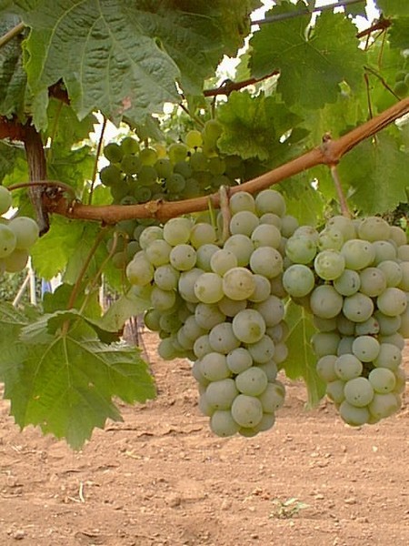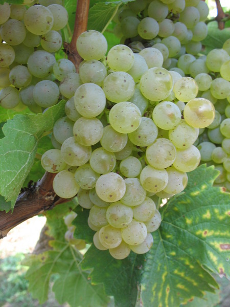- menší, kuželovitý hrozen, hustší; bobule kulatá malá až středně velká, žlutozelená; na vrcholu bobule je černá tečka po blizně