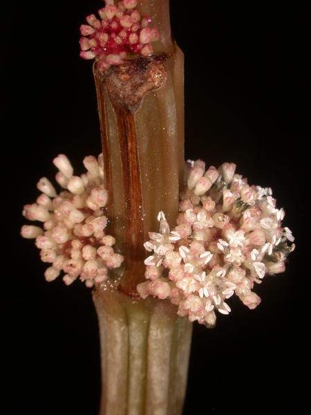 různopohlavné, přisedlé axillární hlávky - samčí v paždí spodních, samičí v paždí svrchních listů
